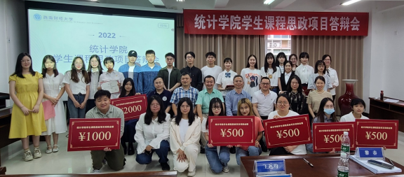 为深入贯彻落实中央、教育部党组和学校关于课程思政建设的有关文件精神,统计学院坚持以学生为中心的思想理念,以立项开展本科生课程思政项目的方式充分调动学生的参与积极性和主动性,切实推动学院课程思政建设走新走深走实。立项以来,各项目组在指导教师的帮助下经过反复修改,确保了各项目的顺利完成,学院于5月31日在通博楼B212会议室举办本科生课程思政项目答辩,学校教师教学发展中心主任王远均、学院副院长龚金国出席答辩活动,课程思政项目指导教师范国斌、黎春、罗杰、苏应生、夏怡凡等参加本次活动。