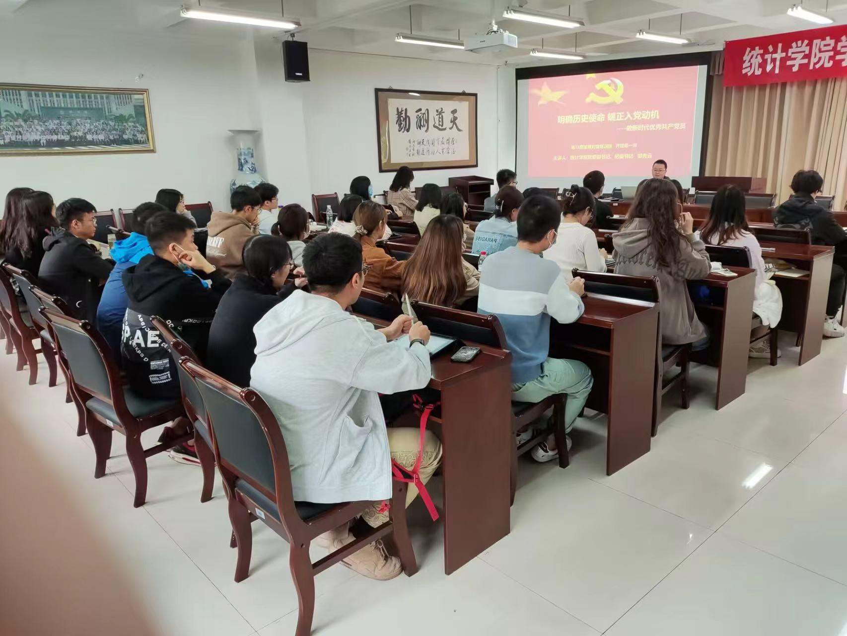 2022年10月11日下午,统计学院在通博楼B212开展了第15期党员发展对象培训班开班仪式暨第一次党课。本次党课由学院党委副书记、纪委书记邹先云主讲,学院第15期党员发展对象培训班全体学员参加了本次学习。