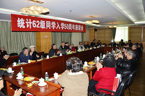 统计学院统计学专业62级的校友重访自己的母校。上午10点半,隆重举行了62级校友入学50周年座谈会。