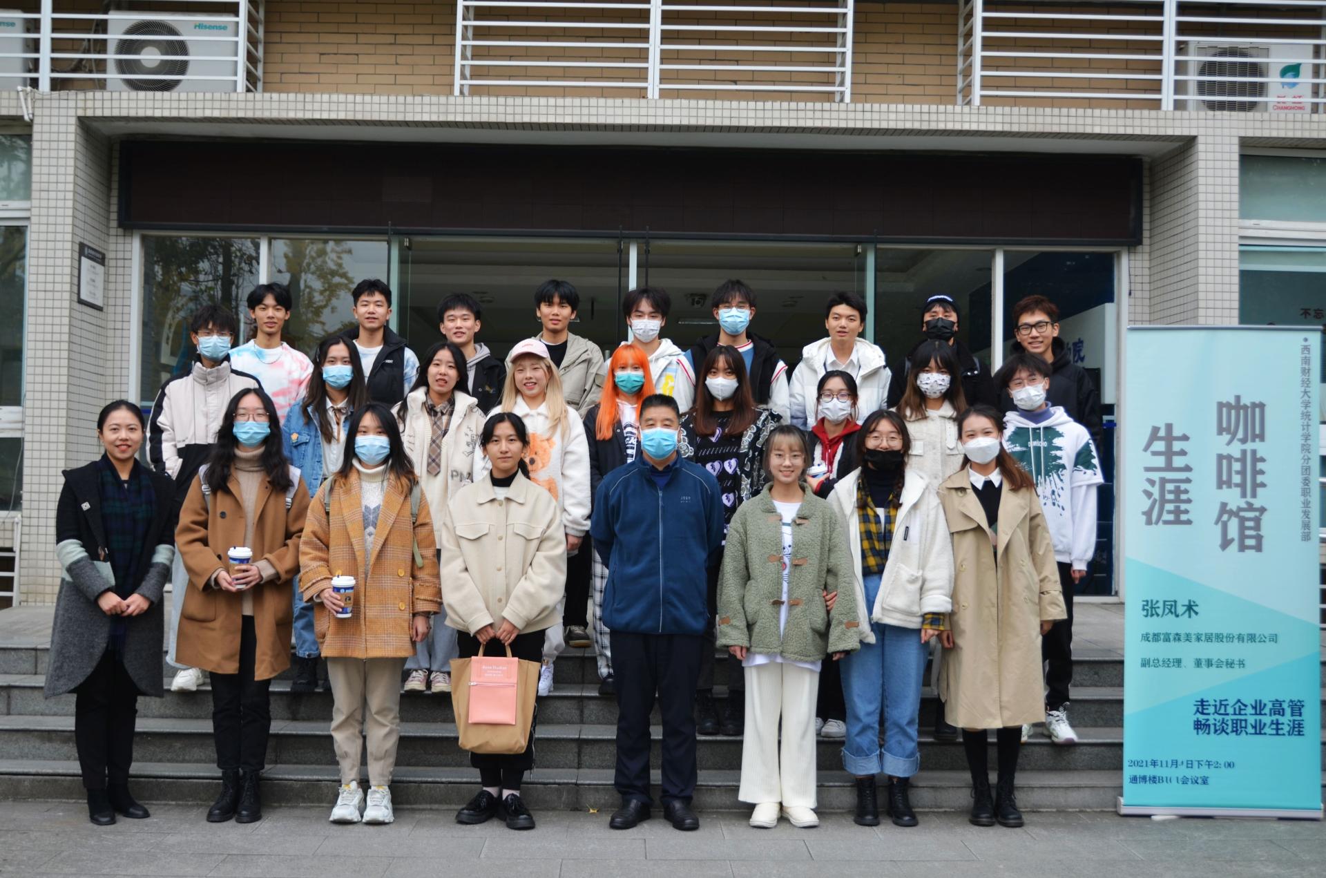 2021年11月16日,由统计学院筹办的“生涯咖啡馆”活动在通博楼212如期举行。本次活动有幸邀请到统计学院88级校友,现任成都富森美家居股份有限公司副总经理、董事会秘书张凤术先生作为嘉宾,与到场的同学们分享工作经历与职场经验。