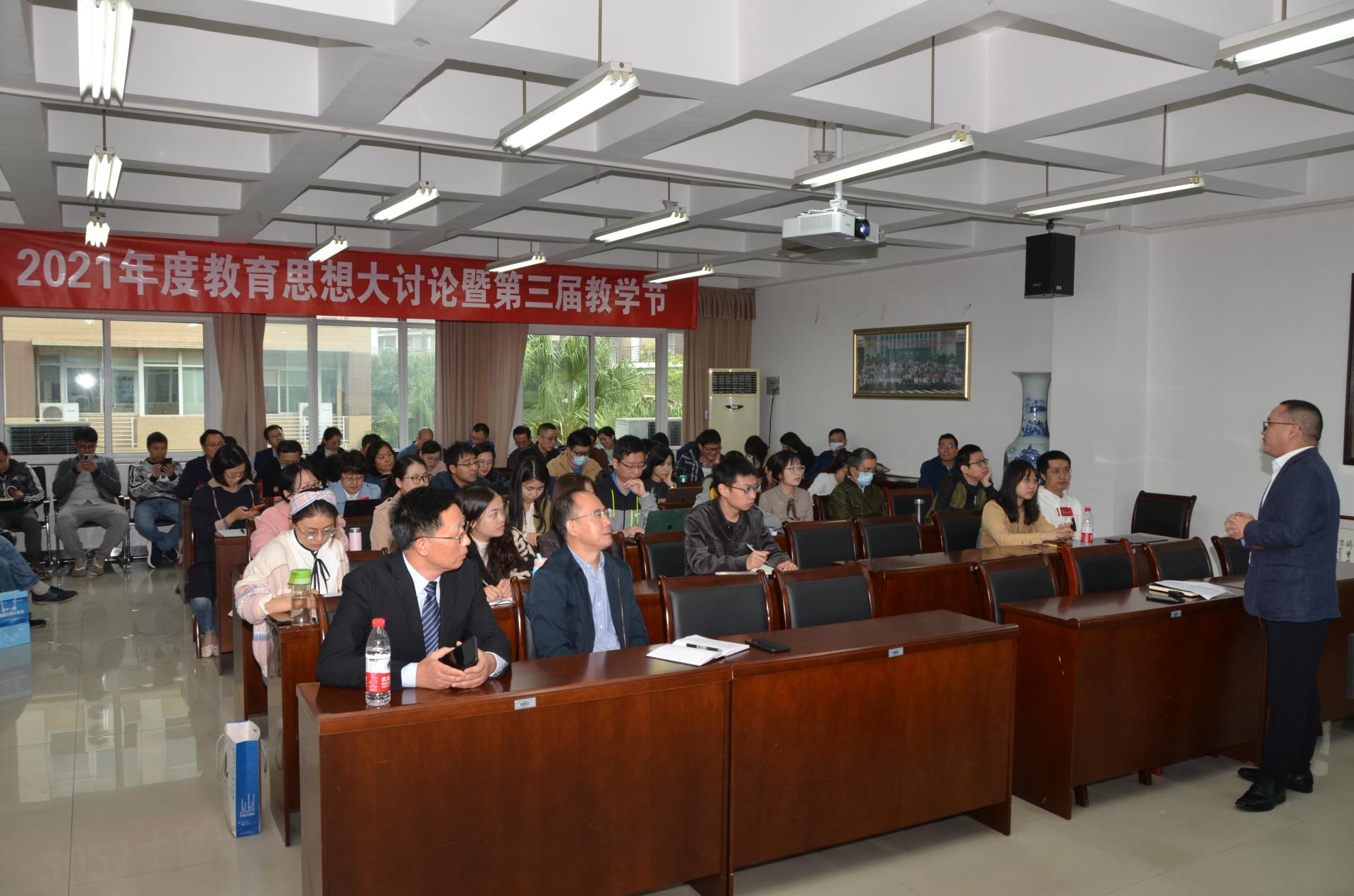 为全面贯彻党的教育方针,落实立德树人的根本任务,扎实推进《高等学校课程思政建设指导纲要》《习近平新时代中国特色社会主义思想进课程教材指南》等文件要求,学校于九月初发布了2021年教育思想大讨论暨第三届教学节实施方案,本次活动以“门门有思政、课课有特色、人人重育人”为讨论主题,组织各学院开展教育思想大讨论工作。