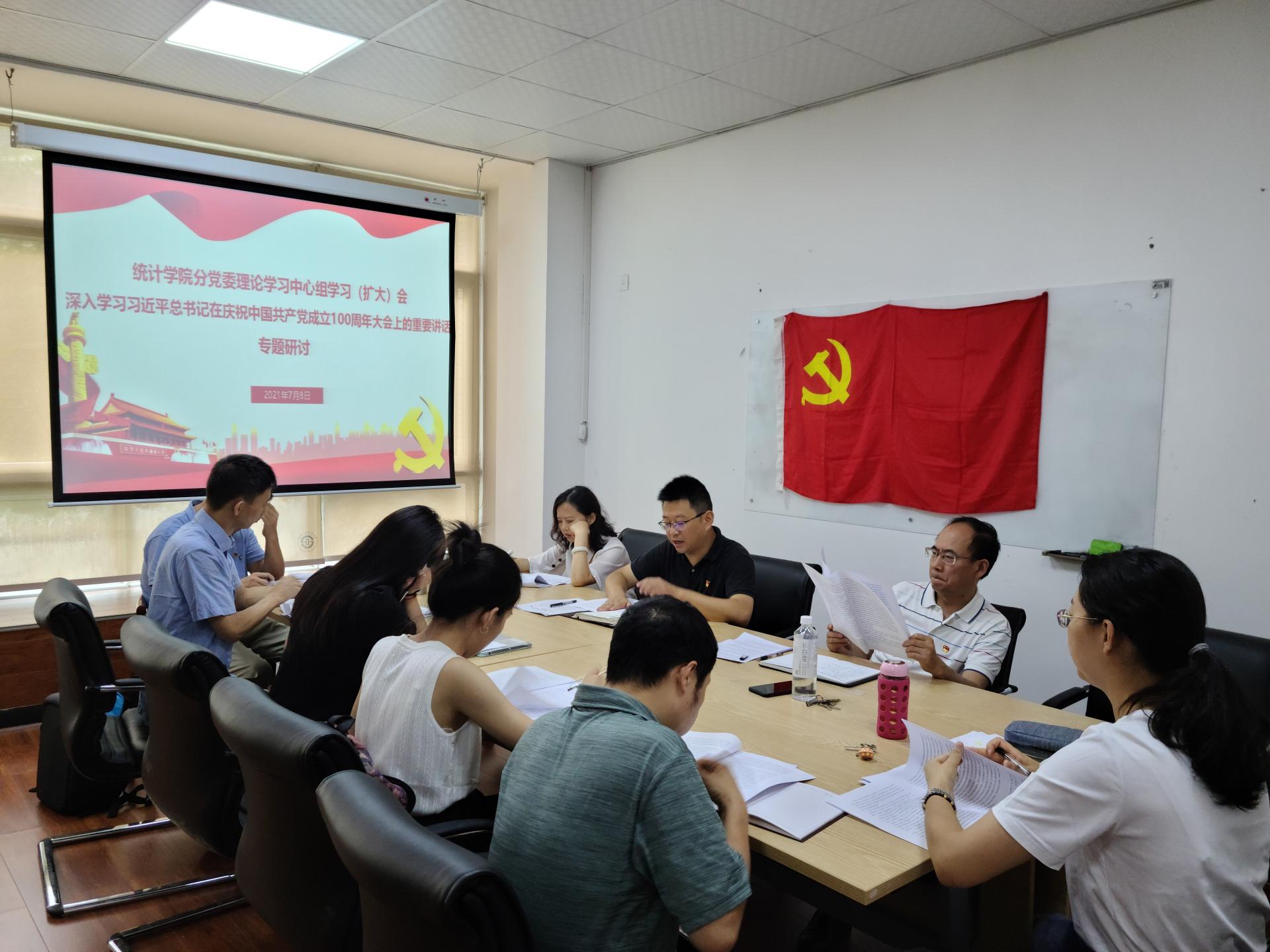 为扎实开展党史学习教育,统计学院于2021年7月8日上午在通博楼B101会议室开展深入学习习近平总书记在庆祝中国共产党成立100周年大会上的重要讲话精神专题研讨。学院分党委理论学习中心组成员参加会议,学院教师党支部书记和学生党支部书记代表列席学习会。分党委书记黄海波主持会议。