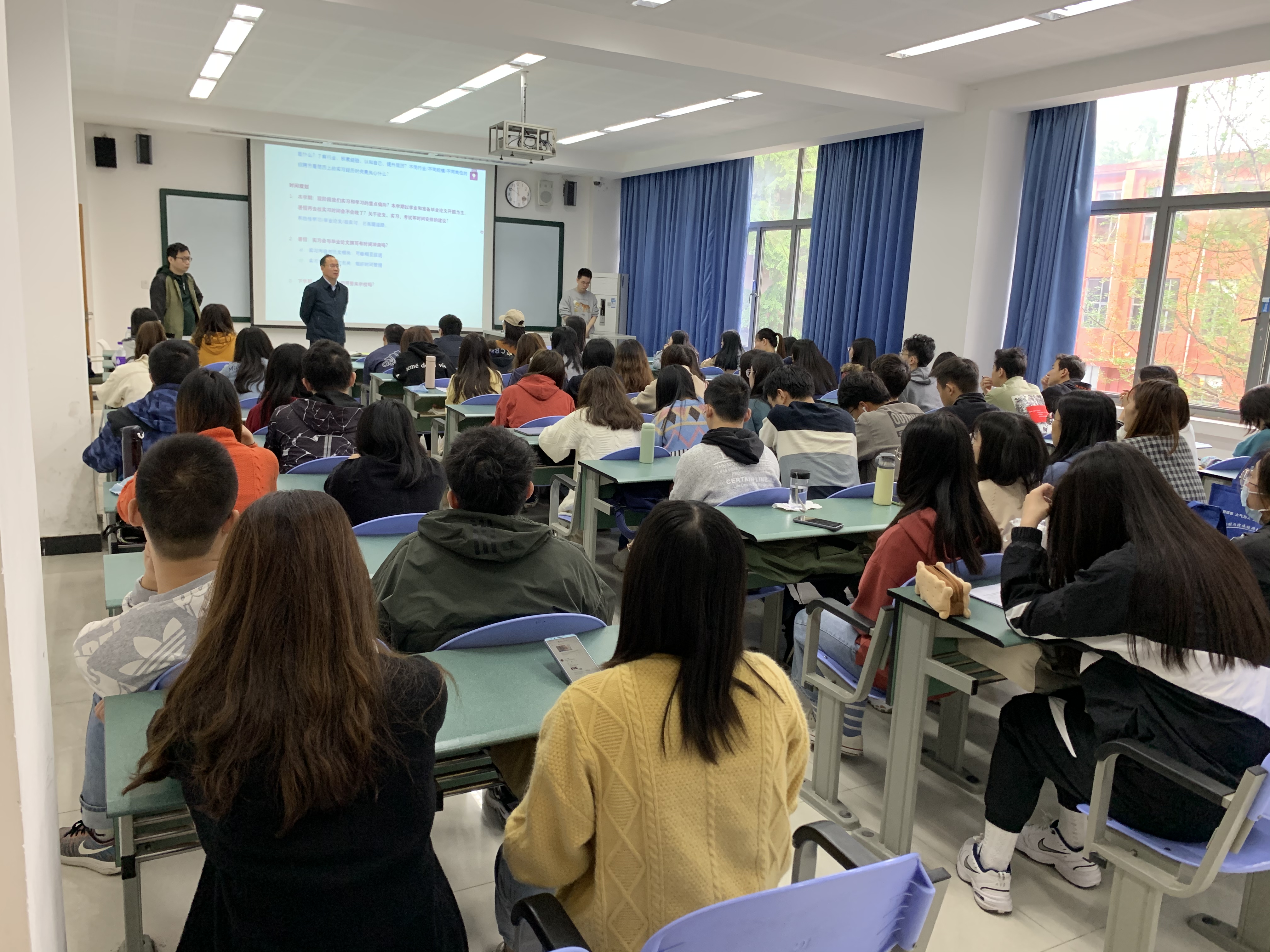 为扎实开展党史学习教育,深入推进“我为群众办实事”重点任务,助力学生成长成才,统计学院于4月9日上午在光华校区明德楼208教室召开针对2019级、2020级应用统计专业硕士的培养座谈会。学院分党委书记黄海波、院长郭建军、应用统计硕士项目负责人李可、项目成员李伊、班级辅导员出席此次座谈会。