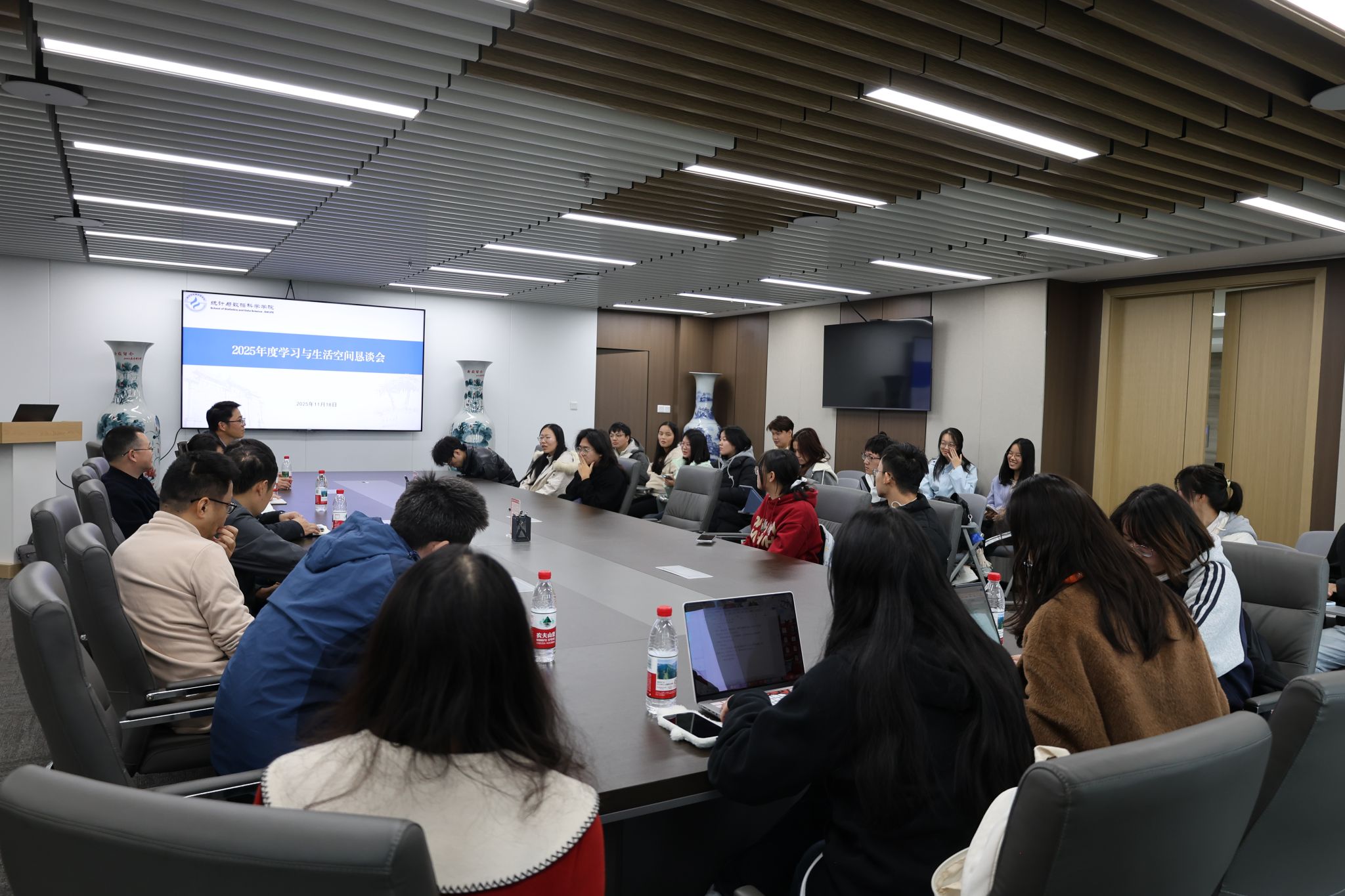 为积极响应全国学联“我为同学做实事”项目号召,聚焦同学需求解决实际难题,2025年11月18日下午学院团委在诚正楼1320会议室召开学习与生活空间恳谈会,学院党委副书记邹先云、副院长马丹、副院长兰伟、系所负责人,各年级学生代表30余人参加会议。