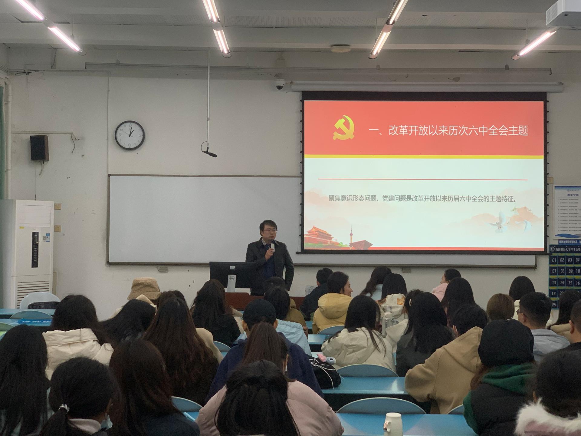 首先,陈宁老师介绍了改革开放以来历次六中全会,包括各次会议的时间、主题、精神和相关文件,强调了学习各次会议内容的重要性。其次,陈宁老师阐述了十九届六中全会召开的背景和主题,强调了本次会议是中华民族伟大复兴处于关键时期召开的一次具有历史性意义的会议,全党要坚持唯物史观和正确党史观,紧紧围绕“实现中华民族的伟大复兴”这一个主题。随后,陈宁老师解读了十九届六中全会的“十四个新”,在讲解到国内外环境的新阐述时,强调同学们要牢牢记住坚持以马克思列宁主义、毛泽东思想、邓小平理论、“三个代表”重要思想、科学发展观、习近平新时代中国特色社会主义思想为指导思想;在讲解到十个“明确”时,深入对比八个“明确”,强调全面从严治党的重要性和必要性;在讲解到“两个确立”与“一个决定性意义”时,强调“两个确立”内容的重要性;同时,还特别强调了总结党的百年奋斗历史经验的“十个坚持”。最后,陈宁老师对同学们重申学习十九届六中全会内容的重要性,并且希望同学们加强对党史的学习。