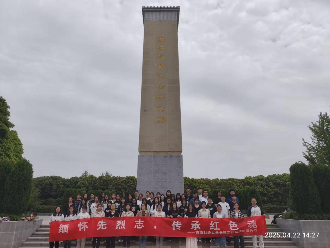 为缅怀革命先烈,传承红色精神,女同av 党建工作站组织第20期发展对象培训班学员于2025年4月22日赴温江区烈士陵园开展红色教育活动。