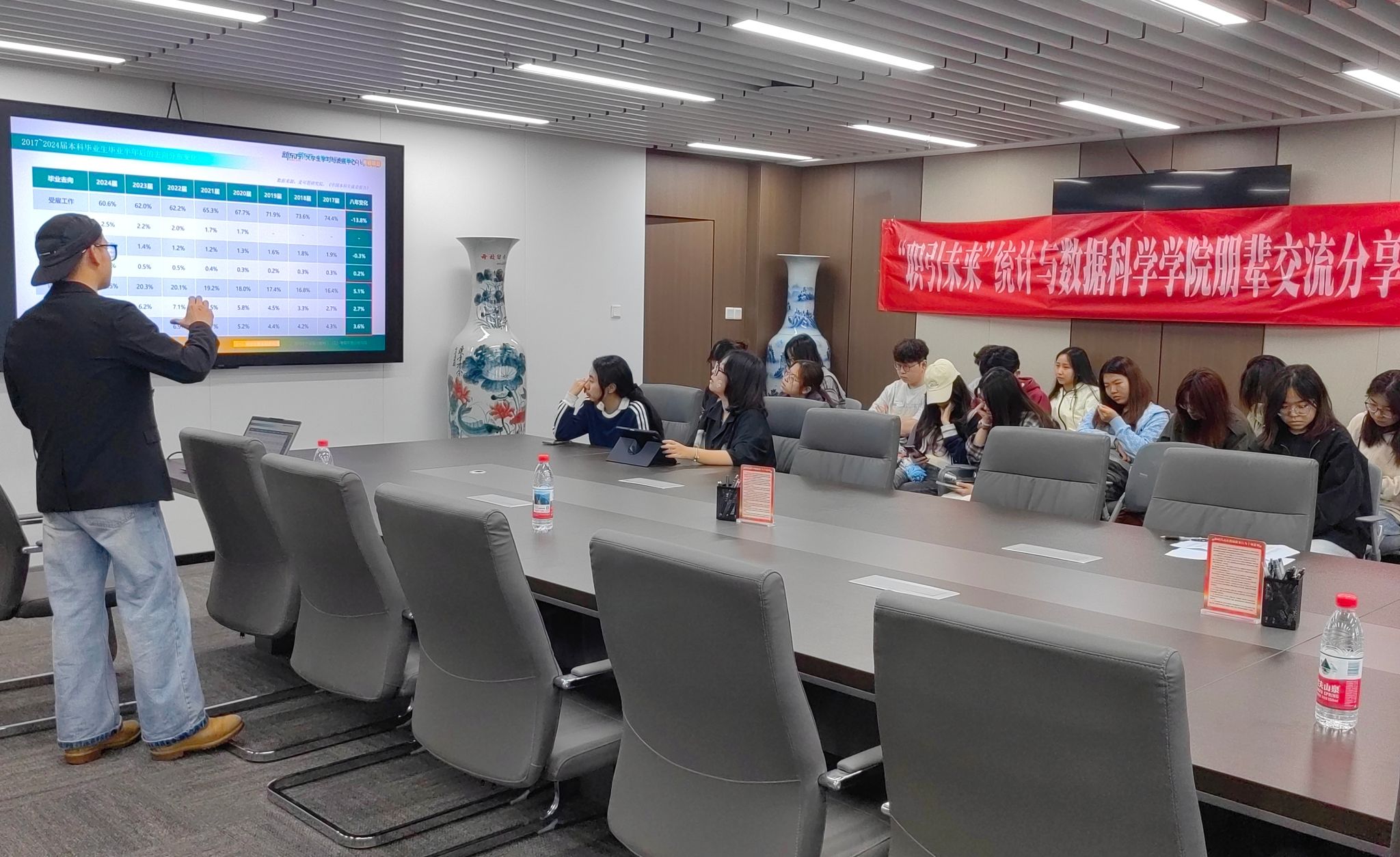 “职引未来”朋辈交流分享会考研专场在诚正楼1320顺利举行。活动特邀学院两位成功考研的大四学子与新东方大学生学习与发展中心讲师,为在场同学带来精准、实用的考研备考指导与经验分享。