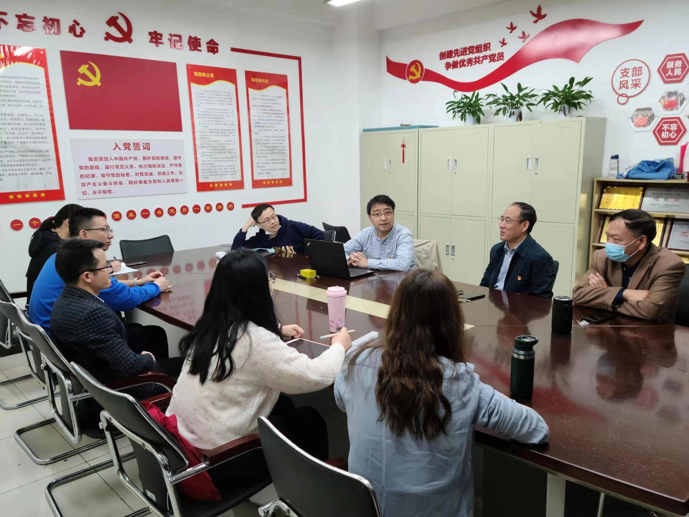首先,支部全体党员学习了“习近平总书记在党史学习教育动员大会上的讲话”和“学校召开2021年春季学期中层干部学习会”等学习资料。其次,全体党员对学校在学科建设、学术研究、人才培养、疫情防控、脱贫攻坚等方面成绩展开讨论,大家表示将会提高自我要求,加强自我管理,按照学校工作总体思路和要求,为学校“十四五”发展和“双一流”建设贡献自己的力量,以优异成绩迎接建党一百周年。